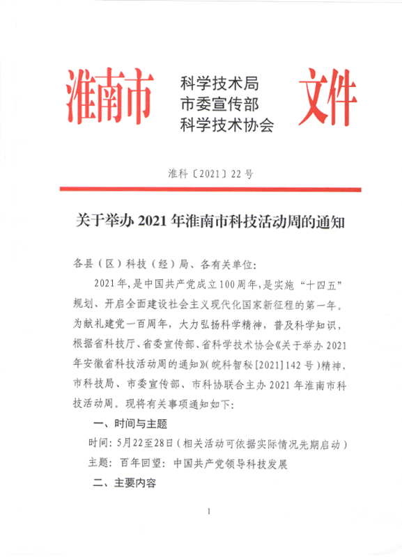 關(guān)于舉辦2021年淮南市科技活動周的通知