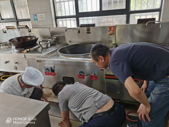 工作人員在檢查燃?xì)忾y門和燃?xì)廛浌苁欠衤?/span>