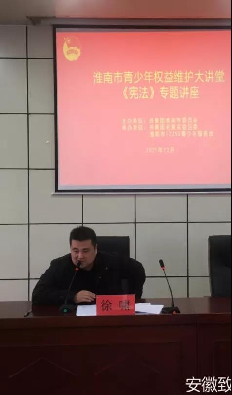 2021年11月30日、12月1日,中心律師王天鵬、徐嘯應共青團淮南市委邀請,走進安徽工貿職業(yè)技術學院、毛集實驗區(qū)明德小學,為大學生、小學生宣講憲法知識,旨在弘揚憲法精神,增強廣大青少年學生的法治觀念,推動社會形成尊崇憲法、遵守憲法的濃厚氛圍,樹立憲法權威。