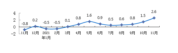 淮南市2021年11月份居民消費(fèi)價(jià)格總水平同比上漲2.6%