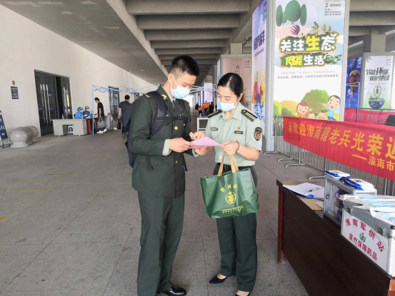 當(dāng)退役老兵抵達(dá)南站時(shí),我站工作人員第一時(shí)間為其登記信息,送上慰問(wèn)禮包,在每一份禮包中附上《致2022年淮南籍退伍返鄉(xiāng)士兵的一封信》和《中華人民共和國(guó)退役軍人保障法》宣傳手冊(cè),并向每一位戰(zhàn)友詳細(xì)介紹關(guān)于退役后的報(bào)到、落戶、職業(yè)教育和技能培訓(xùn)、社會(huì)保險(xiǎn)關(guān)系轉(zhuǎn)接、黨組織關(guān)系轉(zhuǎn)接等政策信息,傾力幫助退役軍人開(kāi)啟人生新篇章,我站熱情周到的服務(wù)受到了部隊(duì)送兵干部和返淮戰(zhàn)友們的一致好評(píng)。