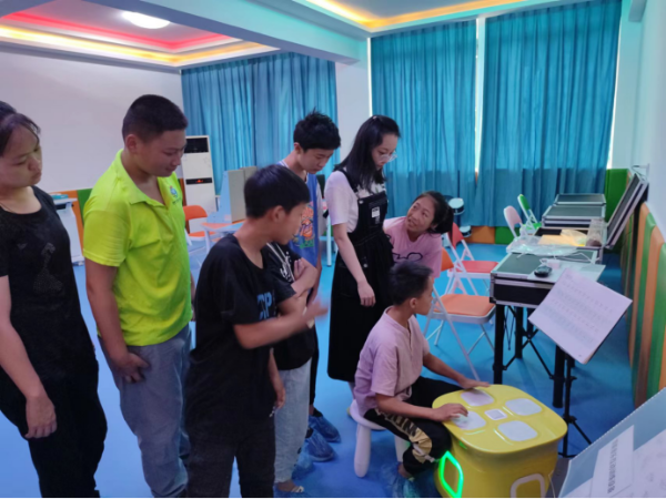 接著學(xué)生們又來到學(xué)校暑期新建的特殊教育資源中心,圍著各種教具,用心學(xué)習(xí)科普知識,認真的傾聽資源資源中心老師的講解,體驗各項科技的奧秘。每一件教具都具有極強的知識性和教育性,讓學(xué)生近距離的感受到了科技帶來的無窮魅力。參觀過程中,孩子們看著從未見過的新奇科技設(shè)施,時而鎖眉、時而大笑,他們親自動手爭搶著實踐,剛剛還是“迷惑”的表情,實踐過后,他們的臉上瞬間露出得意的笑容。