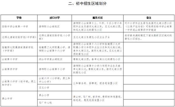 為貫徹落實黨的二十大精神,全面貫徹黨的教育方針,落實立德樹人根本任務,提升人民群眾對教育改革發(fā)展的獲得感和幸福感,推進高新區(qū)城鄉(xiāng)義務教育一體化改革發(fā)展,結合高新區(qū)適齡兒童少年分布情況,現(xiàn)將2023年秋季學期淮南高新區(qū)中小學招生入學相關條件和學區(qū)劃分公布如下: 報名條件 3.不斷鞏固大班額治理成效。2023年轄區(qū)內(nèi)學校學位已滿、存在大班額大校額現(xiàn)象的,原則上不接收轉學生,對于因特殊情況確需要轉入的適齡兒童,由高新區(qū)社會事業(yè)局統(tǒng)籌安排至其他有空余學位的學校相應年級就讀。 學區(qū)劃分 (一)小學招生區(qū)域劃分 2023年秋季學期學區(qū)調整的學校: 1.淮師附小山南校區(qū)(淮師附小山南第十三、第十四小學):不再招收舜耕華府、舜耕樾府、舜耕祥府業(yè)主子女,新增鐘山雍榮府(新建小區(qū)),其他學區(qū)保持不變。 2.淮師附小山南第十五小學:不再招收一品山南、中鐵南山院、金地滟瀾山業(yè)主子女,其他學區(qū)保持不變。 3.淮師附小山南第十六小學:不再招收海德公館業(yè)主子女,其他學區(qū)保持不變。 4.高新區(qū)山南第七小學:新增一品山南、中鐵南山院、金地滟瀾山(原淮師附小山南第十五小學學區(qū))以及華盛國悅府(新建小區(qū)),其他學區(qū)保持不變。 5.北京師范大學淮南實驗學校小學部:招收舜耕華府、舜耕樾府、舜耕祥府、海德公館業(yè)主子女。在學額未滿的情況下面向高新區(qū)區(qū)域內(nèi)的商住小區(qū)招生。待民裕中學建成投用后,該學區(qū)將重新劃分。 2023年秋季學期學區(qū)未調整的學校:淮師附小山南第十小學、高新區(qū)泉山湖中學(小學部)、安師大附屬淮南高新學校(小學部)、安徽理工大學附屬小學、山南第六中學(小學部,原三和中心小學)、玉蘭小學、黃山小學、馬廠中心學校。 (二)初中招生區(qū)域劃分 2023年秋季學期學區(qū)調整的學校: 1.實驗中學山南第一中學:不再招收玉蘭大道以東、和風大街以南(淮師附小十六小學區(qū))商住小區(qū)業(yè)主子女,其他學區(qū)保持不變。 2.安師大附屬淮南高新學校(初中部):新增和風大街以南(淮師附小十六小學區(qū))商住小區(qū),其他學區(qū)保持不變。 3.北京師范大學淮南實驗學校(初中部):玉蘭大道以東商住小區(qū)業(yè)主子女,在學額未滿的情況下,面向高新區(qū)區(qū)域內(nèi)的商住小區(qū)招生。待民裕中學建成投用后,該學區(qū)將重新劃分。 2023年秋季學期學區(qū)未調整的學校:山南第十中學、山南第四中學、山南第六中學(初中部,原三和中學)、黃山中學。 2023年淮南高新區(qū)中小學招生入學咨詢電話:0554-6629193 附件:2023年高新區(qū)過渡期中小學學區(qū)劃分方案 點擊圖片查看大圖 2023年1月30日 來源:高新區(qū)社會事業(yè)局