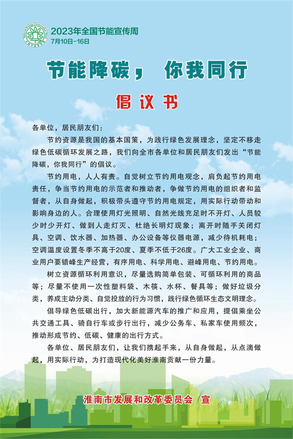 淮南市發(fā)布“節(jié)能降碳你我同行”倡議書