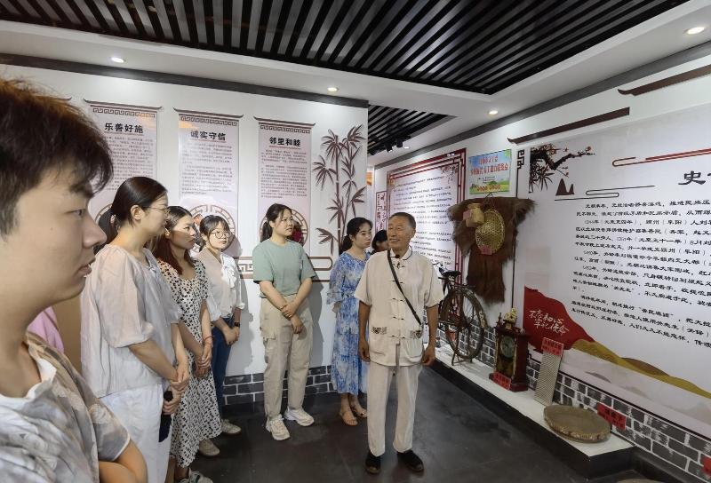 培訓(xùn)班學(xué)員來到鳳臺縣顧橋鎮(zhèn)臨淝村實訓(xùn)基地,參觀閆湖村“百年治水”展館。