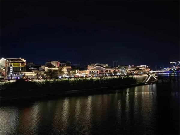 率水、橫江、新安江三江在這里匯聚,文峰橋在夜晚呈現(xiàn)出璀璨且安逸的觀賞效果。日游黃山,夜泊黎陽,黃山市區(qū)的熱鬧,仿佛都匯聚到了黎陽in巷。