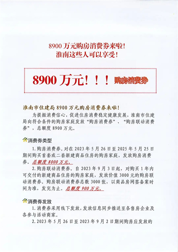 8900萬元購房消費(fèi)券來啦!淮南這些人可以享受!