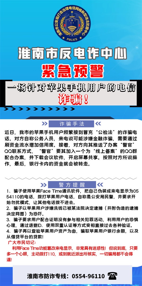 蘋果手機(jī)用戶請注意!淮南反詐發(fā)布緊急預(yù)警