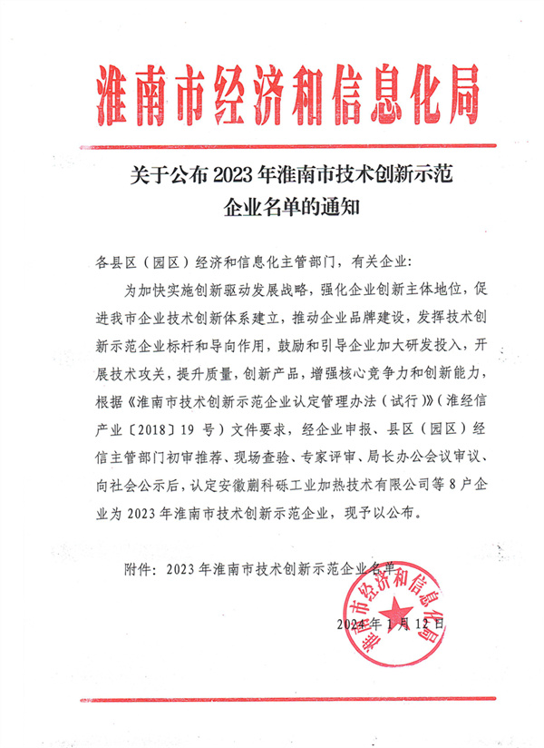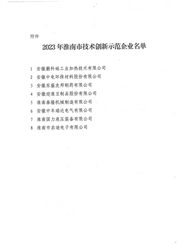 關(guān)于公布2023年淮南市技術(shù)創(chuàng)新示范企業(yè)名單的通知