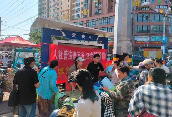 淮南市居保中心開展社保法律法規(guī)宣傳活動(dòng)5月28日上午,市居保中心聯(lián)合田家庵區(qū)人社局在福樂街開展以“人社普法進(jìn)萬(wàn)家,法治保障你我他”為主題的社保法律法規(guī)宣傳活動(dòng)?;顒?dòng)中,工作人員通過向群眾發(fā)放政策宣傳單,面對(duì)面為群眾解答問題,如《社會(huì)保險(xiǎn)經(jīng)辦條例》政策解讀、城鄉(xiāng)居民養(yǎng)老保險(xiǎn)繳費(fèi)標(biāo)準(zhǔn)、城鄉(xiāng)居民養(yǎng)老保險(xiǎn)待遇領(lǐng)取等,與群眾形成良好互動(dòng),營(yíng)造濃厚的宣傳氛圍。此次宣傳活動(dòng),共計(jì)發(fā)放政策宣傳彩頁(yè)、宣傳扇、宣傳袋