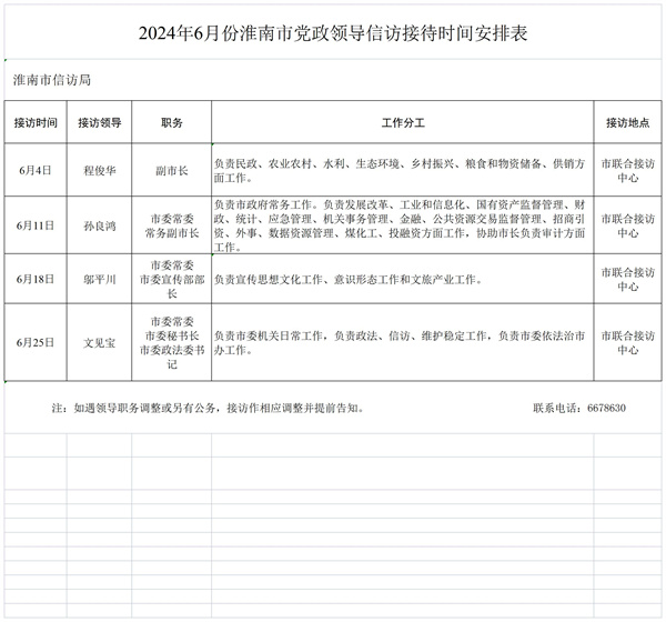 2024年6月份淮南市黨政領(lǐng)導(dǎo)信訪接待時(shí)間安排表