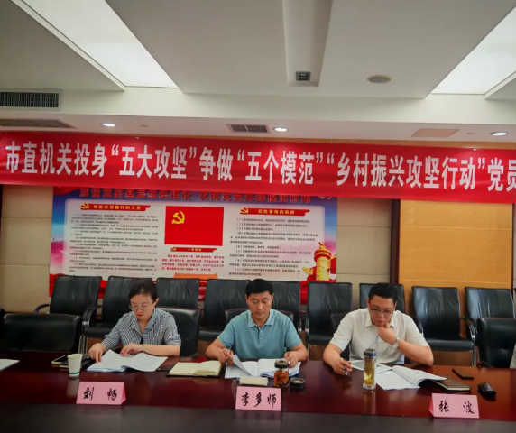 會(huì)議集體學(xué)習(xí)了《市直機(jī)關(guān)工委關(guān)于在市直機(jī)關(guān)開展“投身五大攻堅(jiān)行動(dòng)”爭做“五個(gè)模范”活動(dòng)的通知》文件精神和要求,各成員單位進(jìn)行了座談交流,匯報(bào)了具體工作進(jìn)展、存在問題和下步舉措。張波指出,開展鄉(xiāng)村振興攻堅(jiān)行動(dòng)爭做模范活動(dòng),是落實(shí)市委市政府“五大攻堅(jiān)”行動(dòng)的具體舉措,是推動(dòng)黨建工作和業(yè)務(wù)工作融合的有力抓手。各單位要明確工作目標(biāo),突出鄉(xiāng)村振興攻堅(jiān)行動(dòng)五個(gè)方面重點(diǎn)任務(wù);要統(tǒng)籌協(xié)調(diào),工作上聚合力,行動(dòng)上再發(fā)力,在市直機(jī)關(guān)工委的指導(dǎo)下,進(jìn)一步做優(yōu)做強(qiáng)基層黨組織,更好的發(fā)揮“鄉(xiāng)村振興攻堅(jiān)行動(dòng)”黨員先鋒隊(duì)作用。