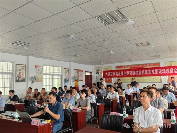 2024年9月20日上午,淮南市科技局、壽縣人民政府組織的“大棚茄果類蔬菜小型智能移栽機”研發(fā)成果現(xiàn)場觀摩會在壽縣迎河鎮(zhèn)李臺村壽縣農(nóng)門天下農(nóng)業(yè)種植有限責(zé)任公司勝利召開。省科技廳農(nóng)社中心副主任李紅兵,市科技局黨組書記、局長劉銀,壽縣縣委常委、副縣長余向榮,省農(nóng)機領(lǐng)域?qū)<遥锌h科技、農(nóng)業(yè)部門工作人員,農(nóng)業(yè)種植大戶等60多人參加了觀摩會。
