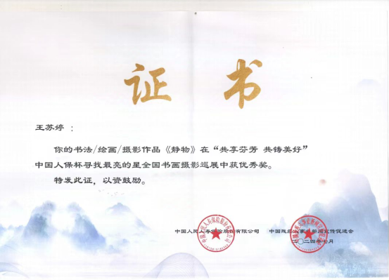 王蘇婷同學的作品充分展現(xiàn)了淮南學生積極向上的健康生活態(tài)度和優(yōu)秀的創(chuàng)作才華,此次獲獎,不僅是個人的榮耀,也是淮南特校全體師生的驕傲。為全校學生樹立了良好的榜樣,激勵著更多同學積極參與藝術(shù)創(chuàng)作相關(guān)的活動。希望淮南特校全體同學能以王蘇婷同學為榜樣,積極投身于美好生活的追求中,在未來的各項活動中創(chuàng)造更多的輝煌。